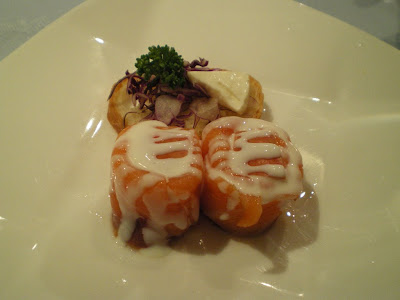 前菜的部份 我們點了烤田螺、鮭魚捲、鮮蝦酥盒