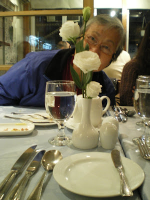 我們家奶奶王很喜歡桌上的白玫瑰