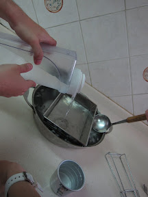 此時在盆中加入熱水